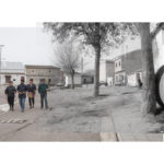 Calle Aviación (actualmente Plaza Roja). Alfredo Moreno sobre una imagen de Jesús Nieto, 1975-2018. Imagen procedente de «El Carpio de luz y de palabra», 2003. Jesús Nieto Palomo.